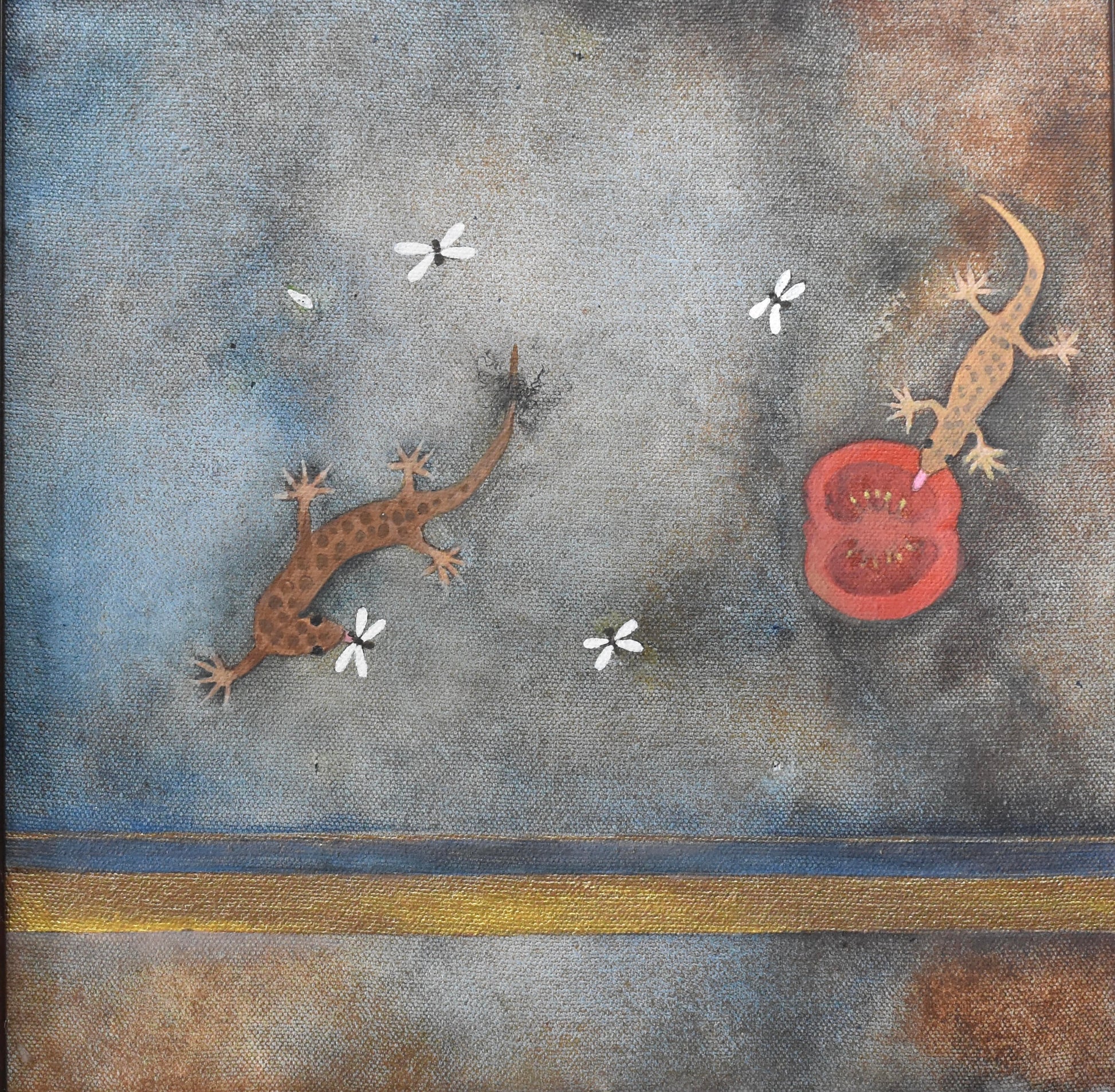 Across five pieces, the work traces cycles of life, death, and consumption through encounters with frogs, birds, lizards, and fish. Each image reflects relationships—between male and female, predator and prey, human and nature. What emerges is not a record of creatures, but a reflection on how survival, desire, and loss shape the fragile balance of existence.