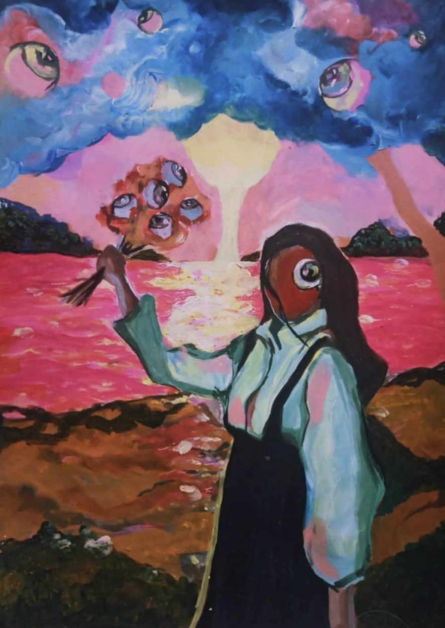 The idea for this piece came from an evening I spent at the beach, simply watching — the sun on the water, the movement of the clouds, the texture of the ground beneath me, and the rocks nearby. I want to say : if I am observing it all, then the ‘ all’ is observing me too.
