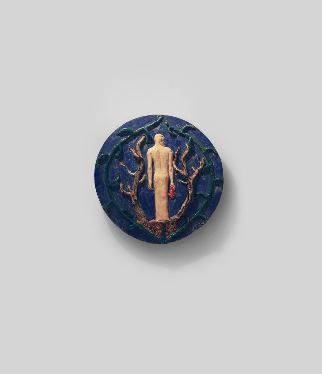 Entangled in vines and branches, a figure holds his own head—an image of fractured identity. Human form and natural growth merge, blurring the line between self and other. In confronting himself, he becomes both observer and observed, exposing the difficulty of defining what is truly authentic.